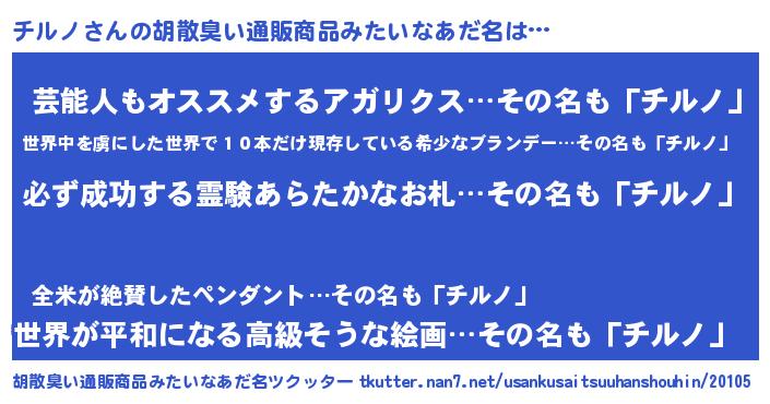 | 欧米人風あだ名 | 『マイケルチルノ』『アンジェラ・チルノ』 |