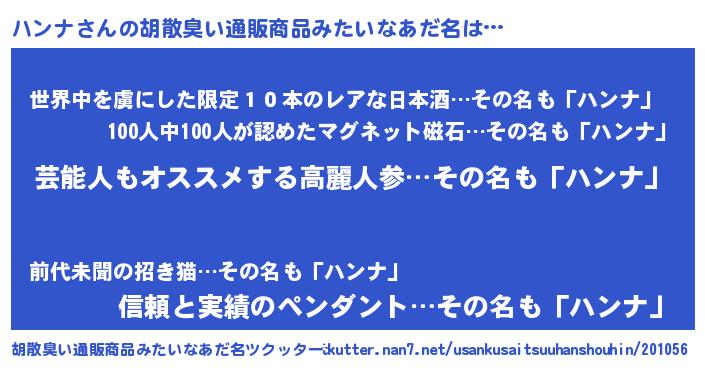 | 意味不明あだ名 | 『自称ハンナ』『住所不定無職ハンナ(40歳)』 |