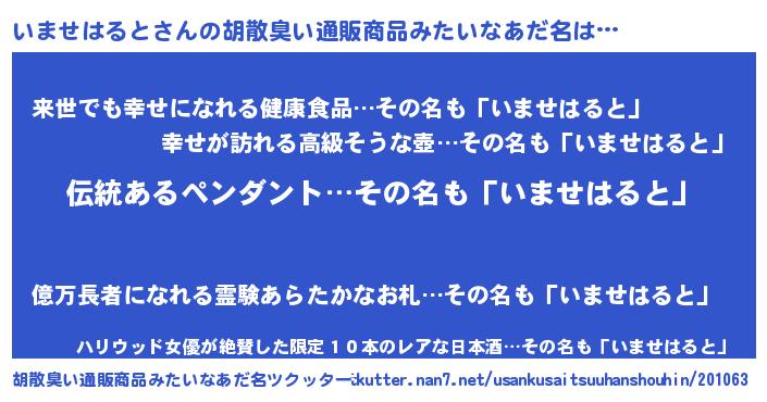 | ヘコむあだ名 | 『いまっちょ』『いませはると(笑)』 |