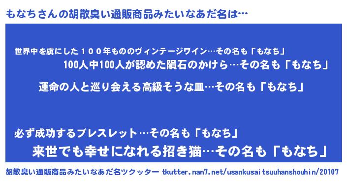 | 意味不明あだ名 | 『もなちフォーエバー』『永久保存もなち』 |