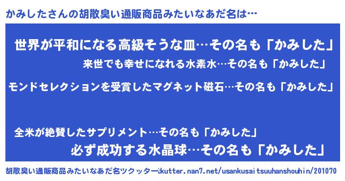 | ヒーロー風カッコイイあだ名 | 『天空の使者かみした』『ネオカミシタ』 |