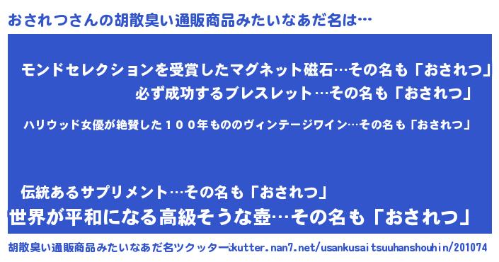 | 意味不明あだ名 | 『住所不定無職おされつ(11歳)』 |