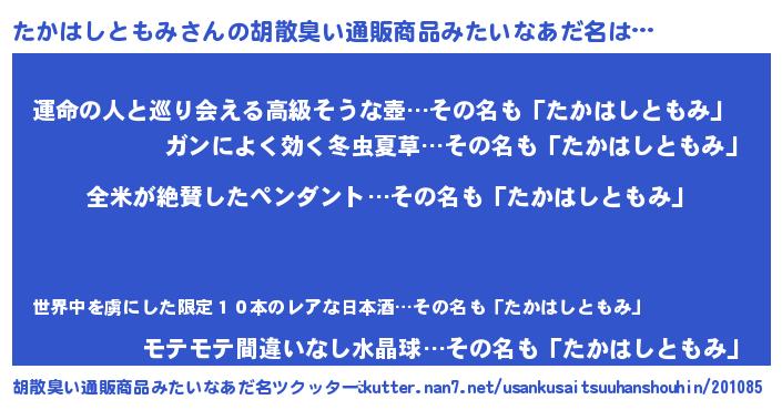 | 意味不明あだ名 | 『とにかく怪しいたかはしともみ』 |