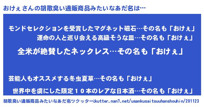 | 意味不明あだ名 | 『とにかく怪しいおけぇ』 |