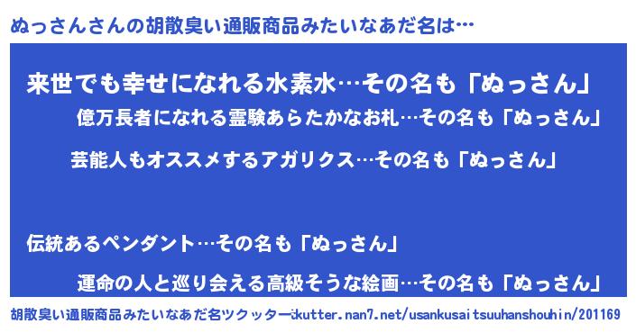 | 意味不明あだ名 | 『自称ぬっさん』『永久保存ぬっさん』 |