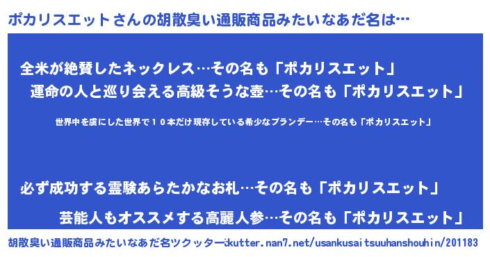 | 男性向けラノベタイトル風あだ名 | 『転生したらポカリスエットだった件』 |