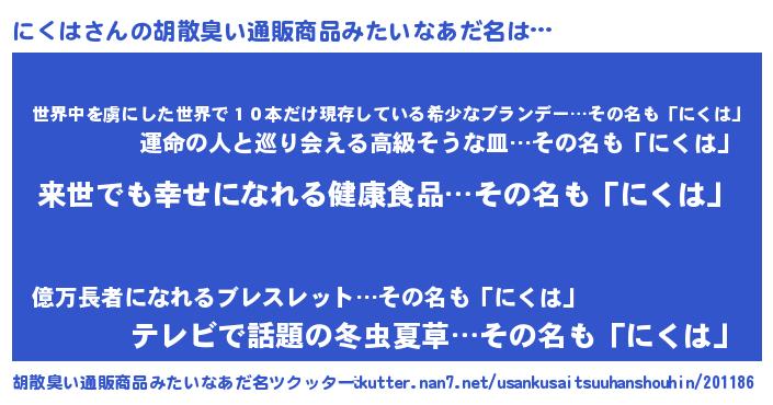 | 欧米人風あだ名 | 『ダルビッシュにくは』 |