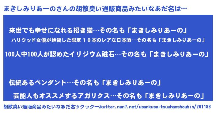 | ヘコむあだ名 | 『まきしみりあーの(笑)』『まき太郎』 |