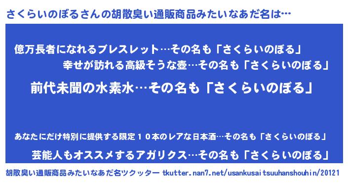 | 意味不明あだ名 | 『永久保存さくらいのぼる』 |