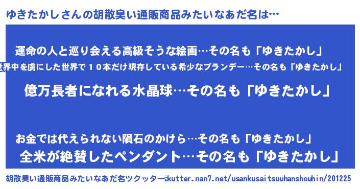 | ファンタジー風あだ名 | 『ユキフェル』『エターナルユキタカシー』 |