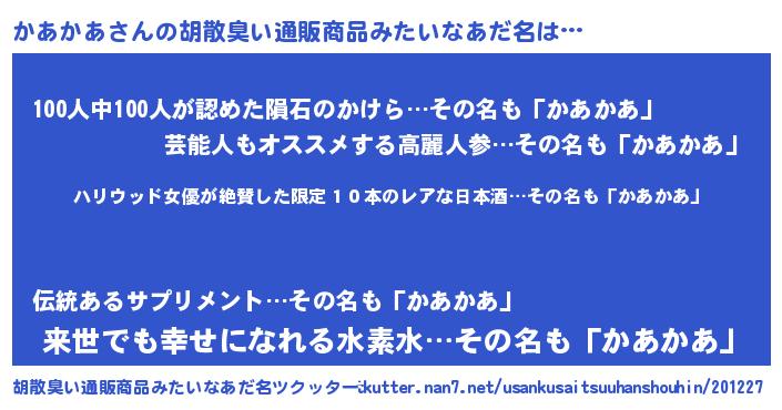 | 意味不明あだ名 | 『住所不定無職かあかあ(47歳)』 |