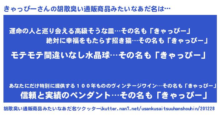 | 男性向けラノベタイトル風あだ名 | 『キャッピーアートオンライン』 |