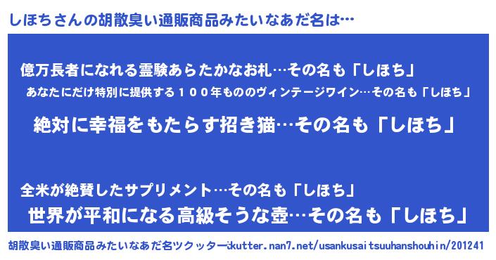 | 男性向けラノベタイトル風あだ名 | 『しほちという概念が存在しない退屈な世界 』 |