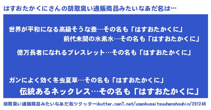 | 肩書あだ名 | 『はすおたかくに社長』 |