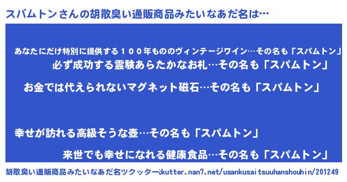 | ヘコむあだ名 | 『スパムトン(小並感)』『スパふぇ~』 |