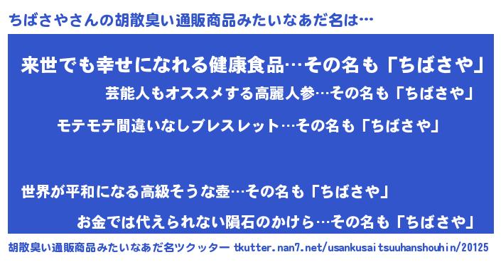 | 意味不明あだ名 | 『ペロリンちばさや』『永久保存ちばさや』 |