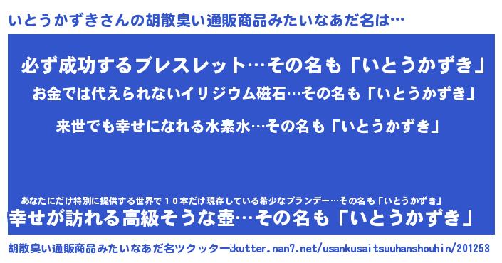 | ヘコむあだ名 | 『いとうかずき(苦笑)』『いとにー』 |