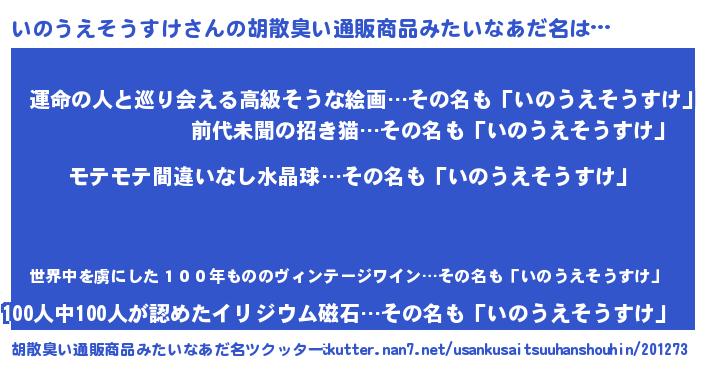 | 男性向けラノベタイトル風あだ名 | 『イノウエソウスケアートオンライン』 |