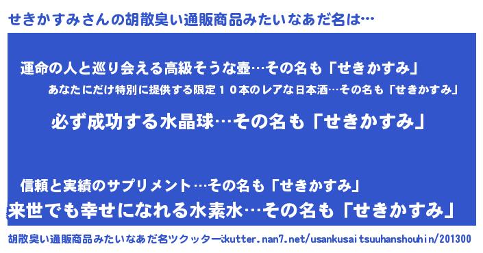 | ヒーロー風カッコイイあだ名 | 『スーパーセキカスミ』『ネオセキカスミ』 |