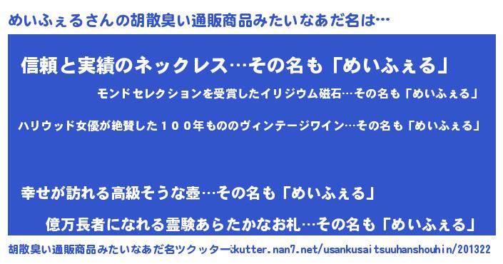 | 料理風あだ名 | 『めいふぇるのカルパッチョ風』 |