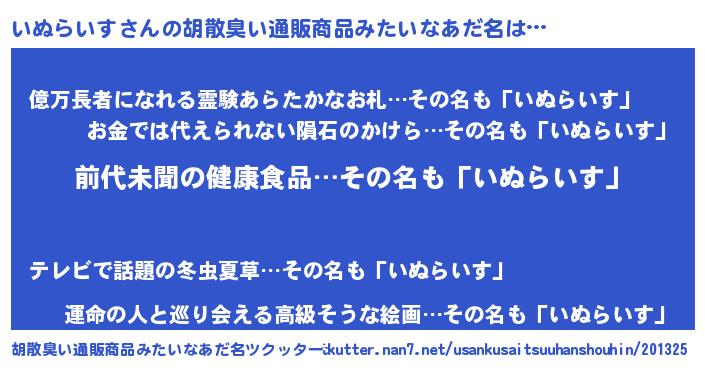 | ヒーロー風カッコイイあだ名 | 『ネオイヌライス』『スーパーイヌライス』 |