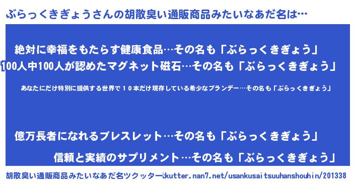 | 意味不明あだ名 | 『住所不定無職ぶらっくきぎょう(84歳)』 |