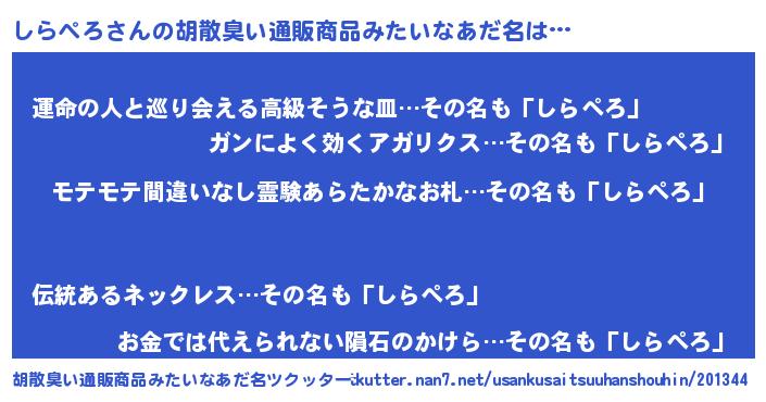 | 意味不明あだ名 | 『ペロリンしらぺろ』『自称しらぺろ』 |