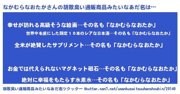 | 欧米人風あだ名 | 『アンジェラ・なかむらなおたか』 |