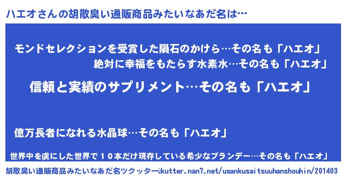 | ヘコむあだ名 | 『ハエを』『ハエオ(震え声)』 |