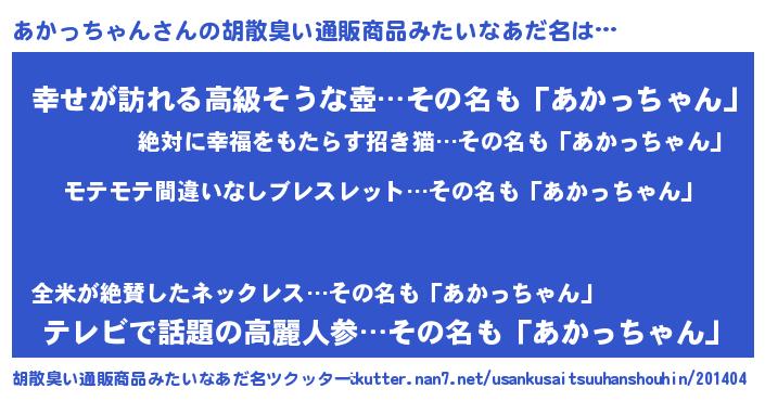 | 意味不明あだ名 | 『ペロリンあかっちゃん』 |