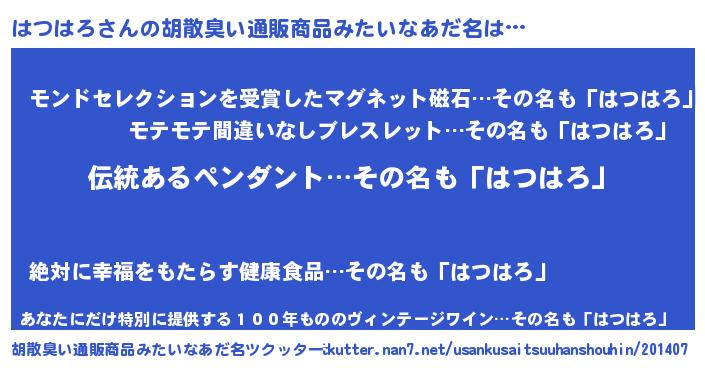 | 意味不明あだ名 | 『とにかく怪しいはつはろ』 |