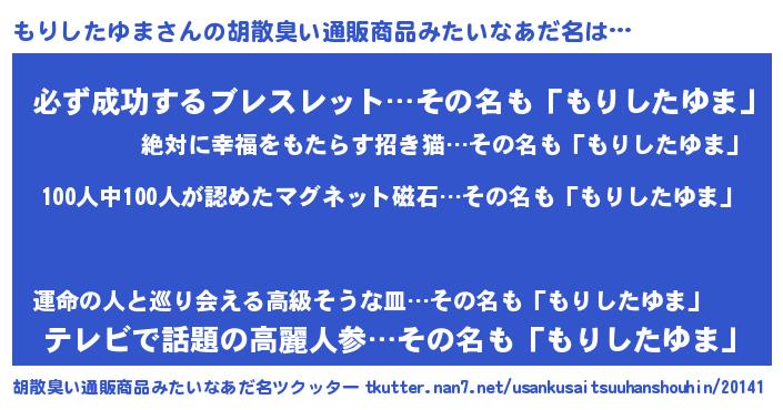| ヘコむあだ名 | 『もりふぇ~』『もりしたゆま(震え声)』 |