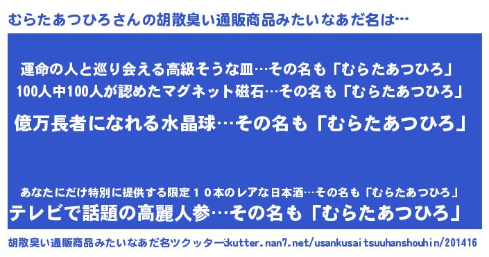 | 意味不明あだ名 | 『ペロリンむらたあつひろ』 |
