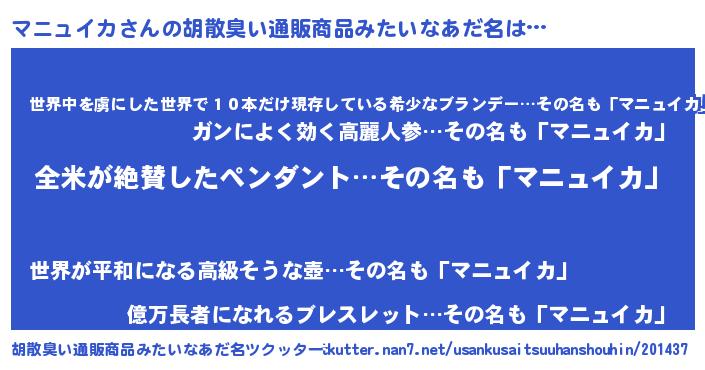 | ヘコむあだ名 | 『マニっちょ』『マニもー』 |