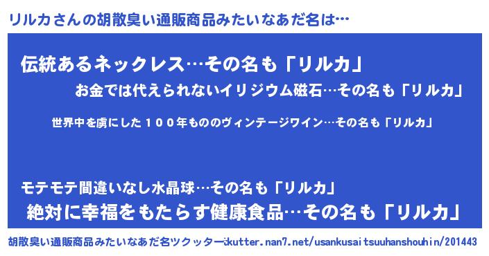 | 意味不明あだ名 | 『住所不定無職リルカ(8歳)』 |