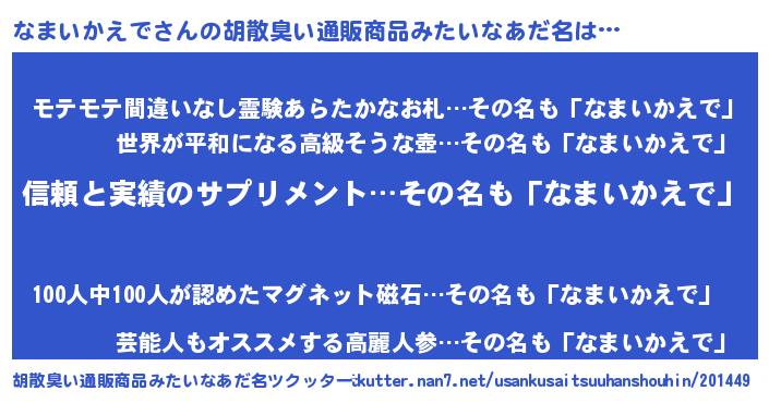 | 意味不明あだ名 | 『とにかく怪しいなまいかえで』 |