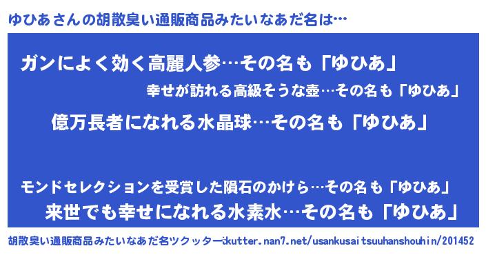 | ヘコむあだ名 | 『ゆひにゅー』『ゆひあ(遠い目)』 |