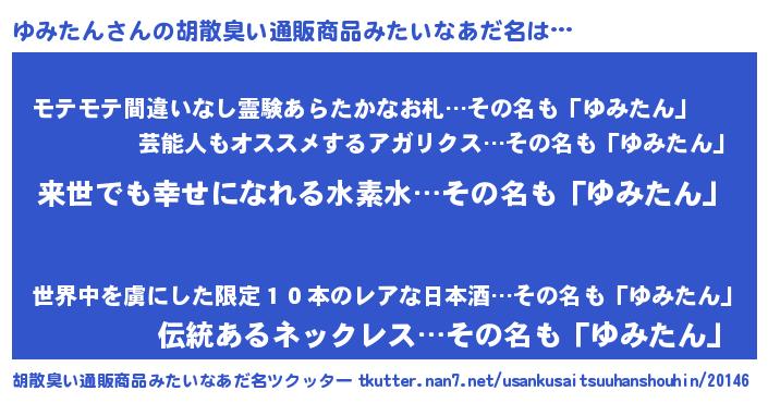 | 意味不明あだ名 | 『永久保存ゆみたん』『ペロリンゆみたん』 |