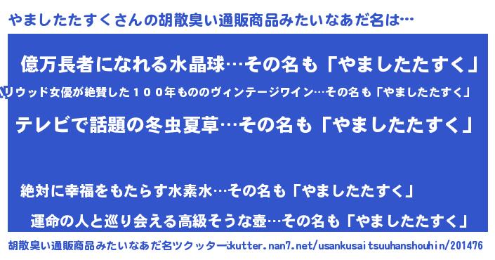 | 肩書あだ名 | 『やましたたすく総統』 |