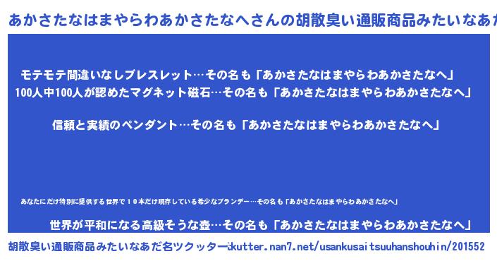 | 欧米人風あだ名 | 『ウサインあかさたなはまやらわあかさたなへ』 |
