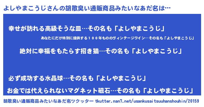 ヘコむあだ名 | 『よしやまこうじ(笑)』『なまこ酢』 |