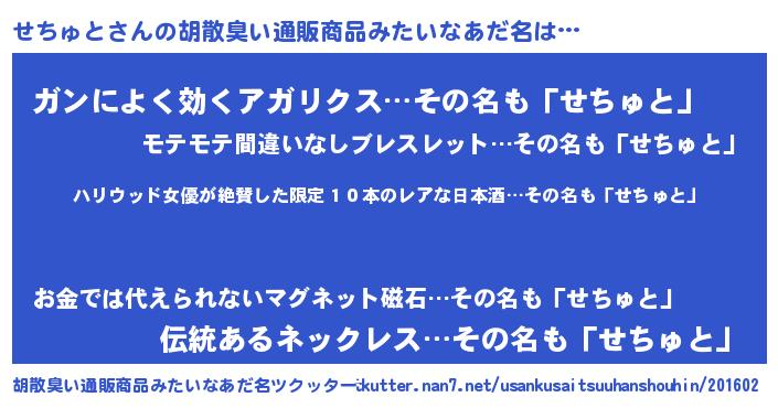 せちゅとさんの胡散臭い通販商品みたいなあだ名をツクッター!