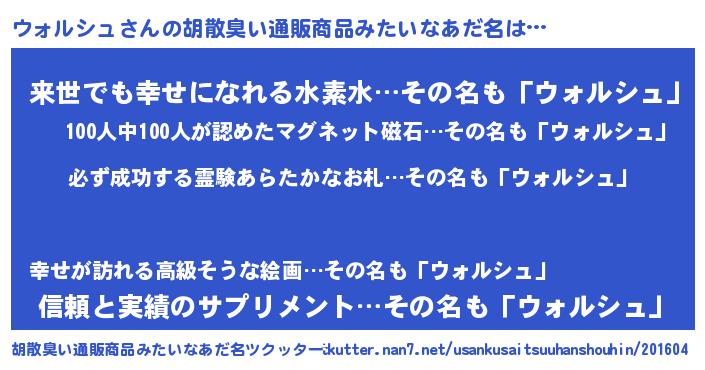 | 男性向けラノベタイトル風あだ名 | 『はたらくウォルシュさま!』 |