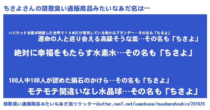 | 欧米人風あだ名 | 『ダルビッシュちさよ』『マイケルちさよ』 |