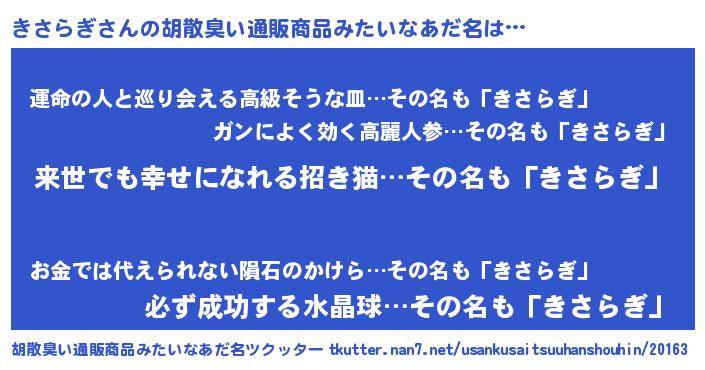 | ヒーロー風カッコイイあだ名 | 『ネオキサラギ』『ウルトラきさらぎマン』 |