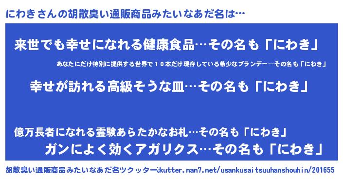 | 欧米人風あだ名 | 『にわきクリステル』 |