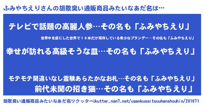 | 男性向けラノベタイトル風あだ名 | 『フミヤチエリスレイヤー』 |