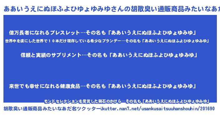 | 欧米人風あだ名 | 『ウサインああいうえにぬほふよひゆょゆみゆ』 |