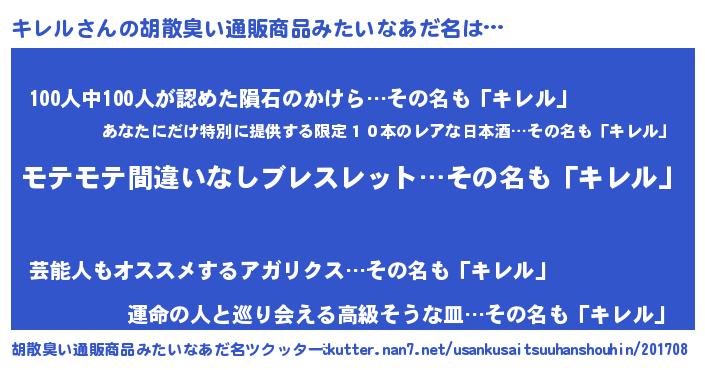| ヘコむあだ名 | 『キレにー』『つくし』『キレを』 |