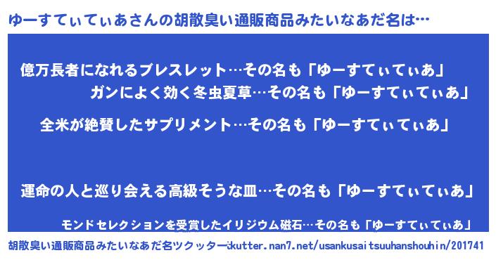 | 意味不明あだ名 | 『とにかく怪しいゆーすてぃてぃあ』 |